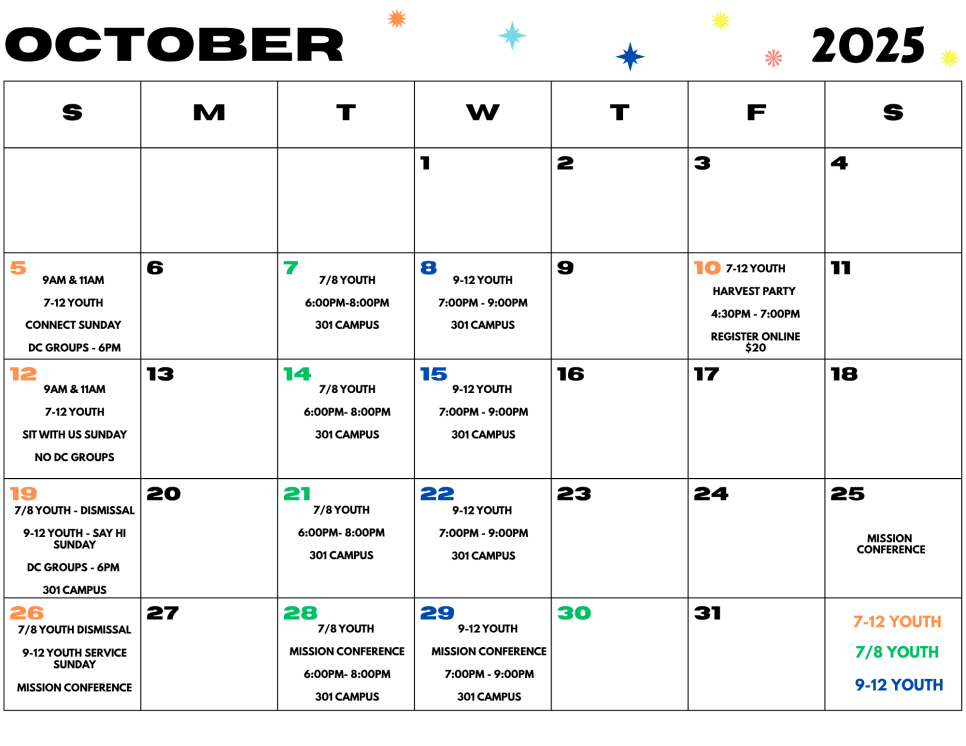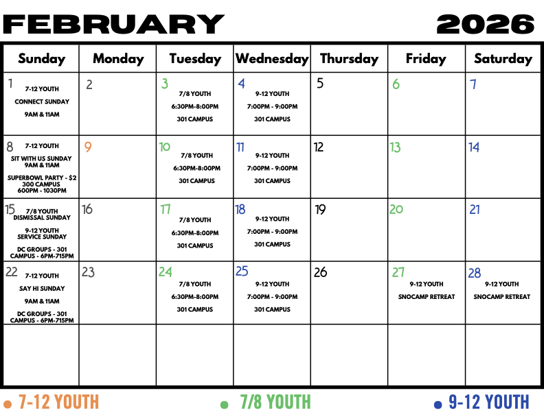 These are Sundays where we sit together in the service as a youth community to worship together, while still worshipping with our whole church family. We’ve got a spot saved for you, so we’ll meet you there!